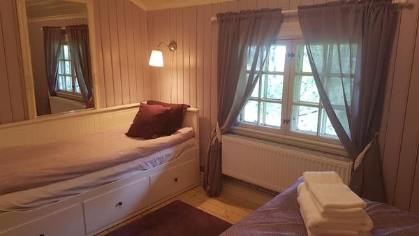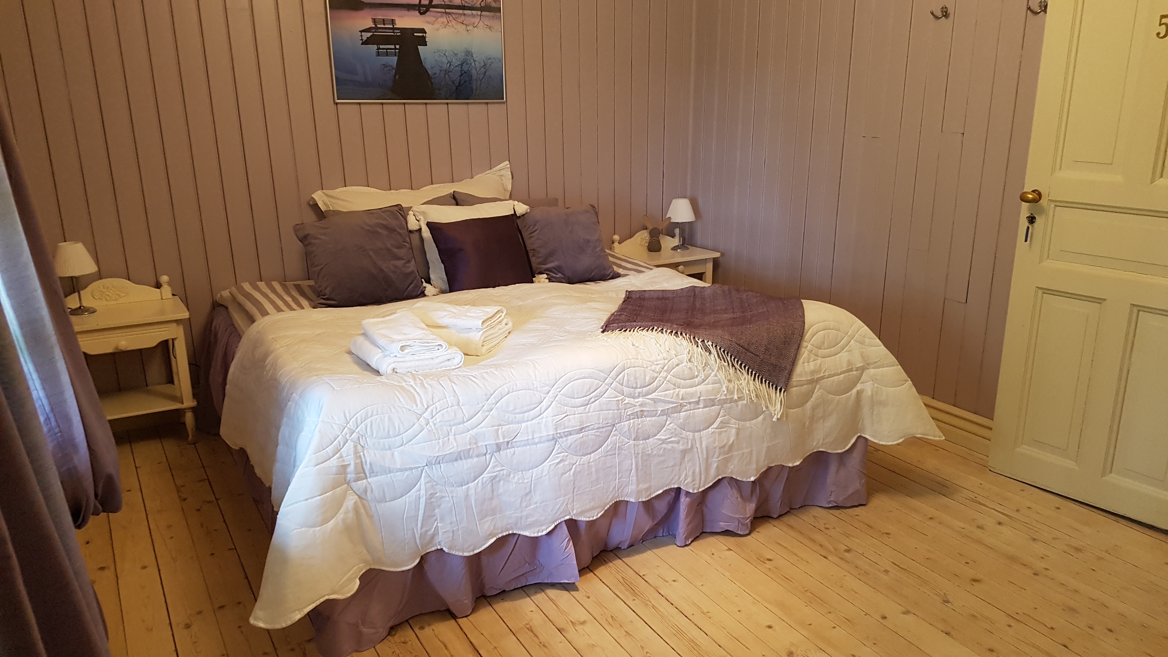 Det Lila rummet har dubbelsäng och en dagbädd för en person samt en stor byrå, helkroppsspegel och mysig matta. Plats finns att ställa in ytterligare en spjälsäng eller en extrasäng/juniorsäng.