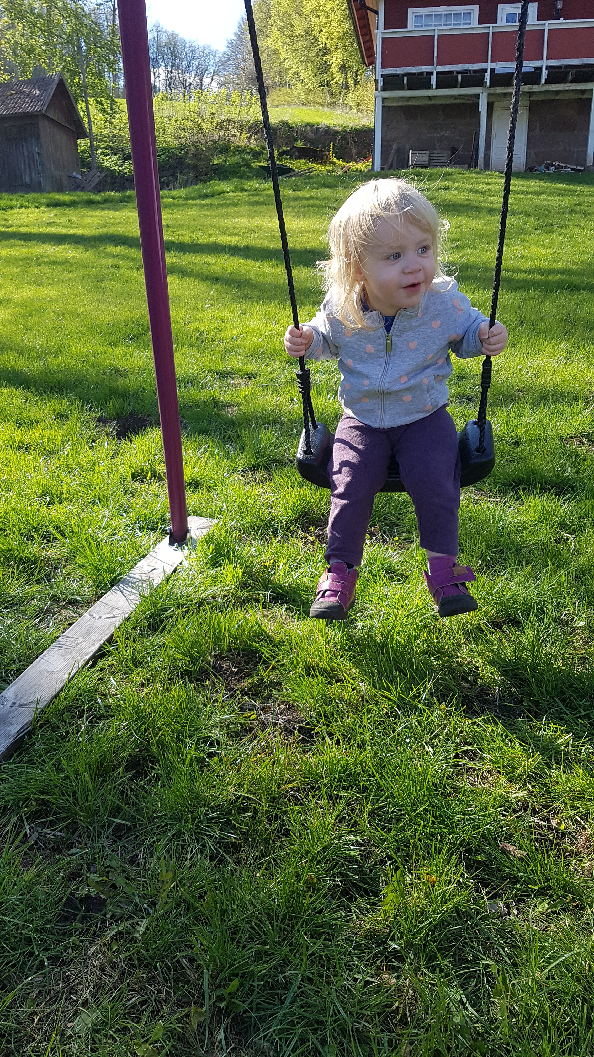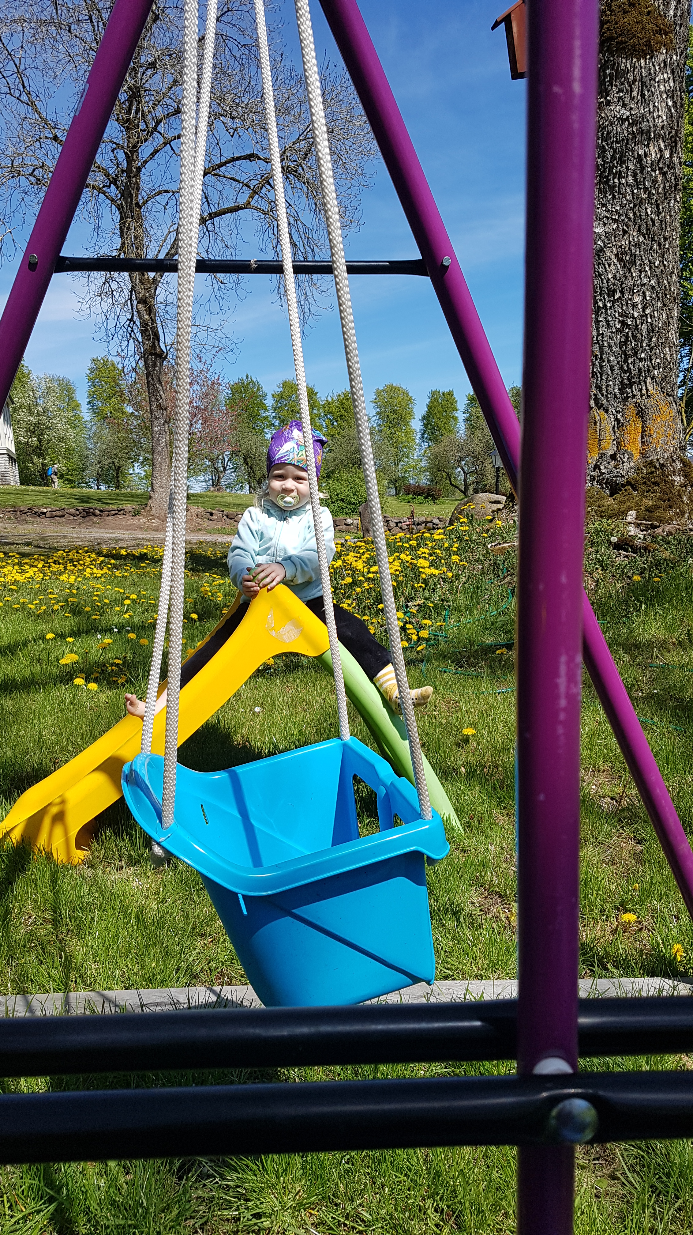 På sommaren finns här en gungställning, sandlåda, klätterställning och liten rutschkana, som era barn gärna får använda under ert besök hos oss.